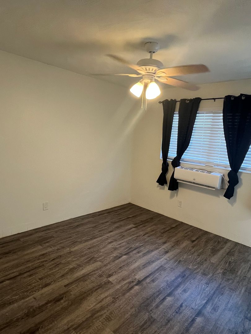 "Fully remodeled 1/1. Brand new kitchen with stainless appliances, new bathroom, vinyl wood flooring throughout, Central AC. Rent includes water. This Unit is equipped with a Washer and Dryer but there is also Coin washer and dryer on grounds. The unit comes with one parking spot assigned. Application Fee