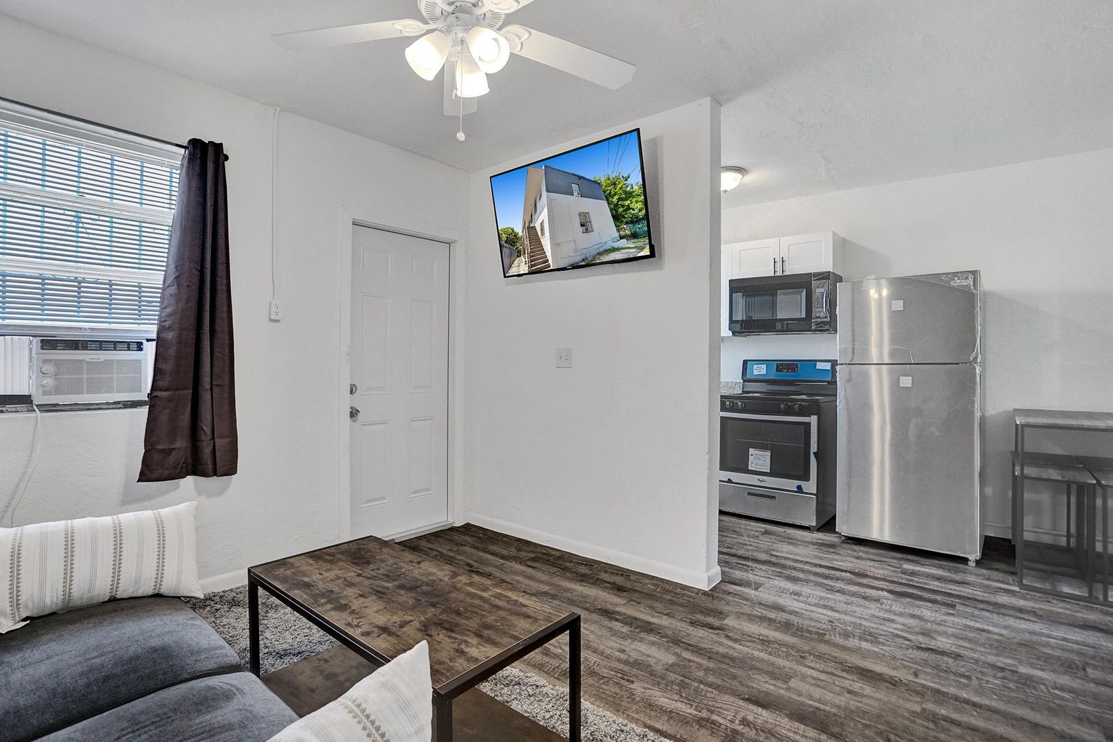 Completely renovated 1 bed / 1 bath. New kitchen, appliances and bathroom. The apartment is a few blocks from Brightline Train Station in Downtown. Quick access to I-95 and 195. Five minutes from Brickell and Wynwood. Gated community.
